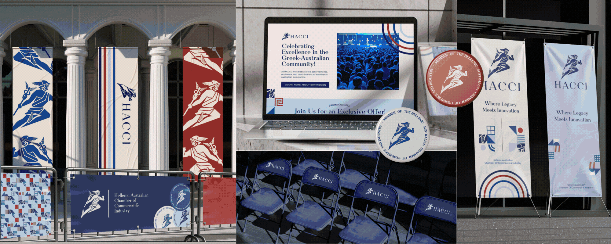Combining prestige with purpose, HACCI’s refined visual identity honours Hellenic tradition while supporting a modern, values-driven network of Greek-Australian business leaders and changemakers.